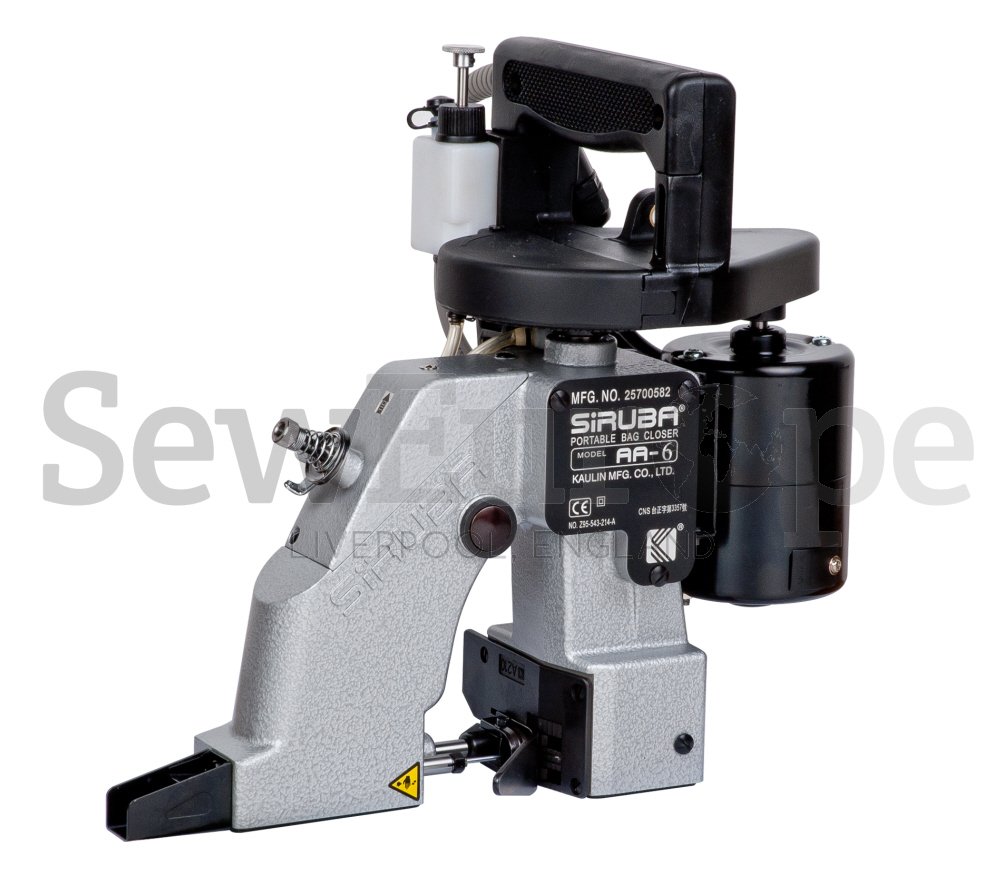 The Siruba AA6 portable bag closing machine is a light weight, easy operational bag or sack closing machine. It comes with an automatic thread cutter and equipped with a manual presser foot lifter. Other features include a lubricatin device for oiling.